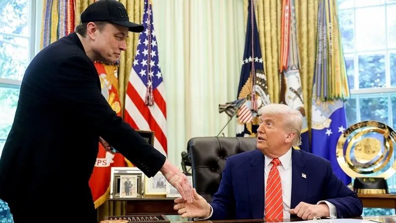 当地时辰5月30日,好意思国华盛顿,马斯克(左)在白宫卵形办公室与特朗普出席新闻发布会。图源:好意思媒